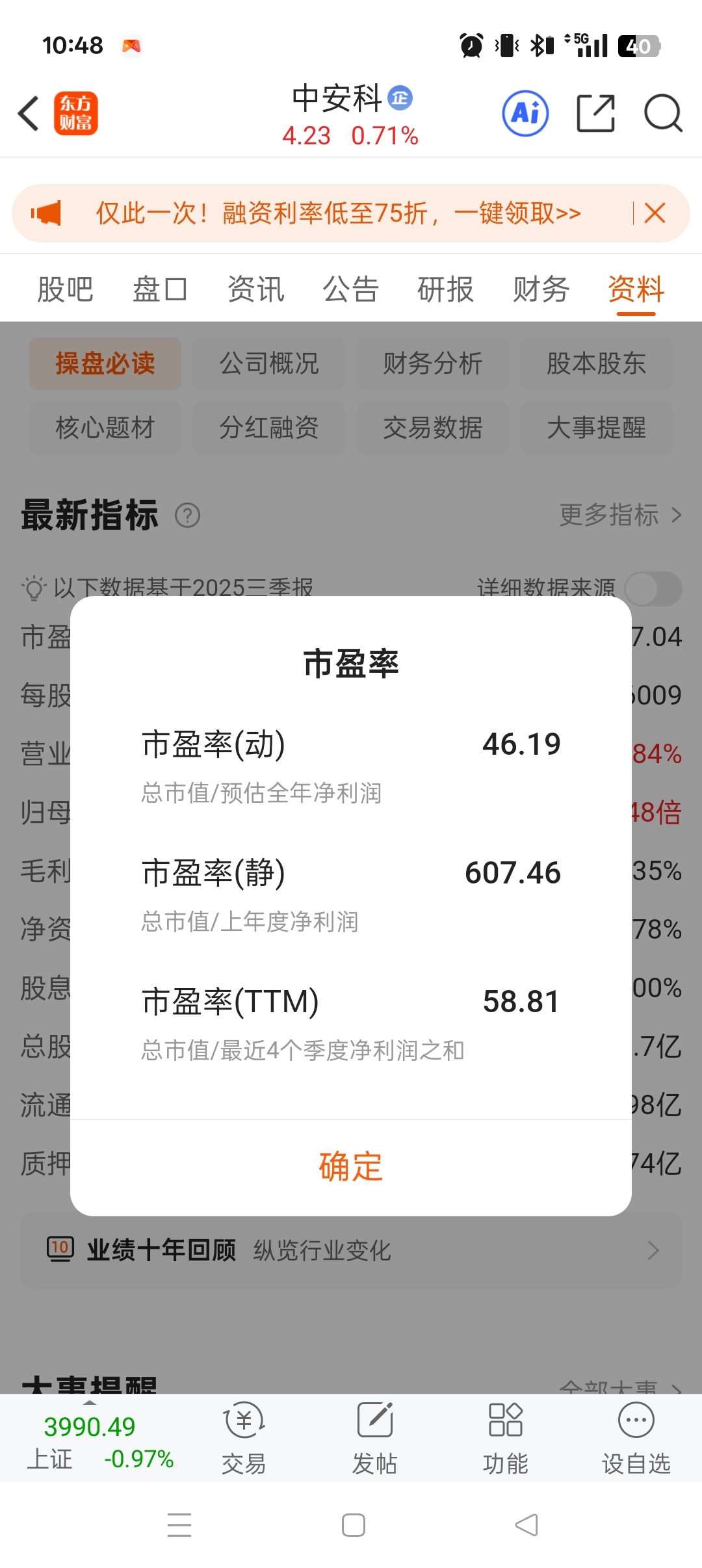 $中安科(SH600654)$ 票是好票 可惜吧里人心态不稳 这人太多都是涨一点就跑的散户 记住越吹票越跌 还得洗 还得下跌一下 等待建仓点吧 三个市盈率 公司稳步上升