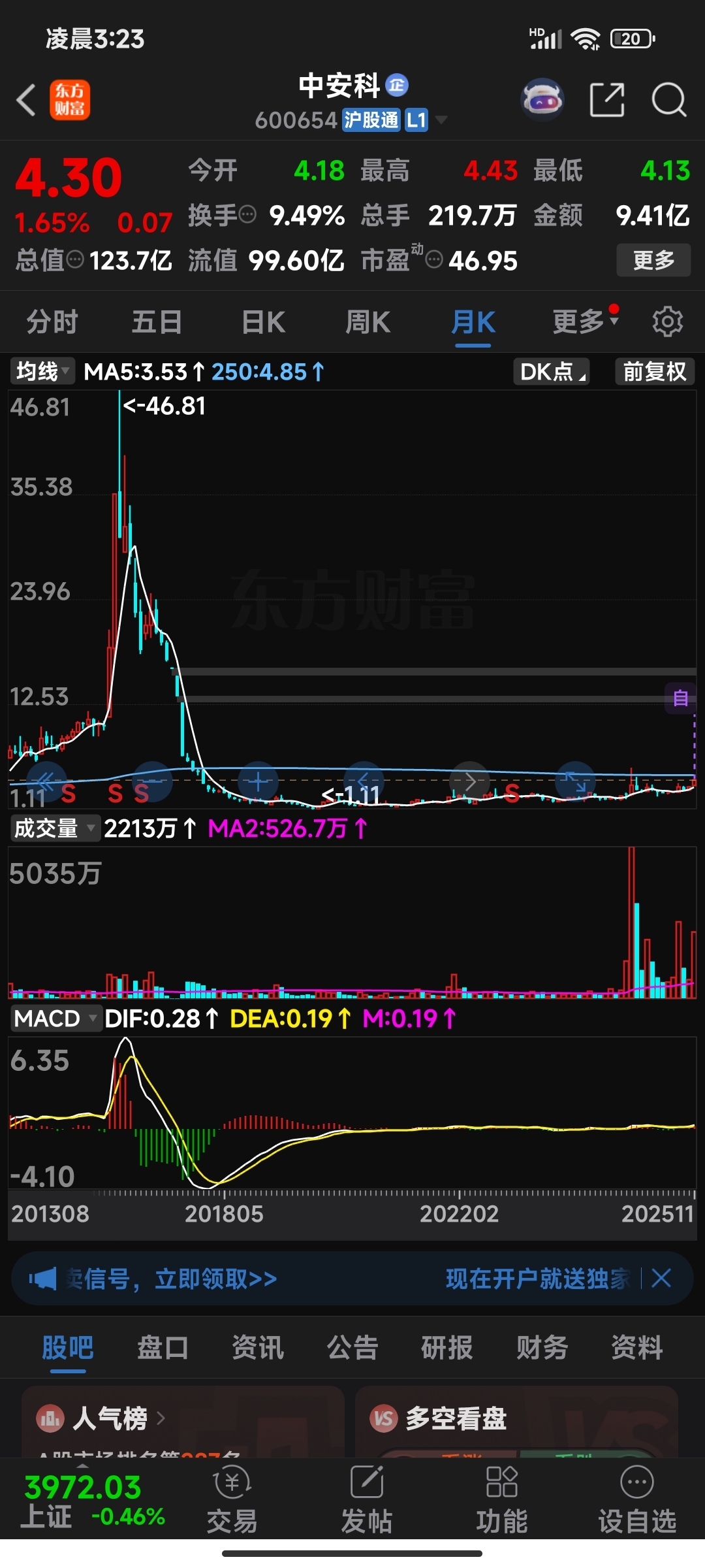 $中安科(SH600654)$ 中安科,你会重新回到历史上的高度么?