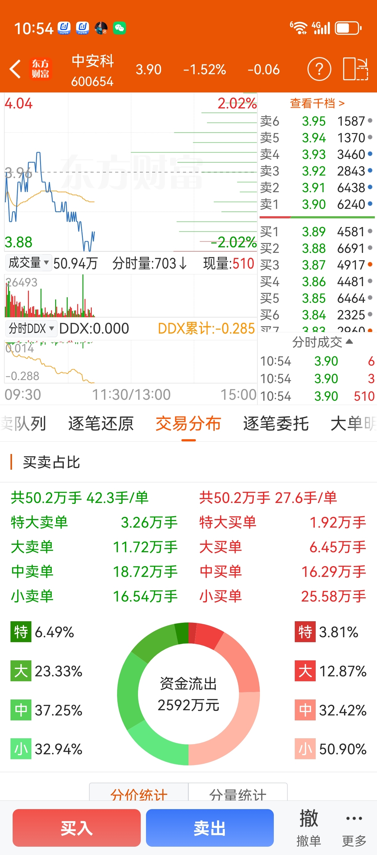 $中安科(SH600654)$ 主力疯狂出货散户疯狂接飞刀。都是大买单买单都是小买单。这不行情结束了,先跑了算了,锁点利润。。