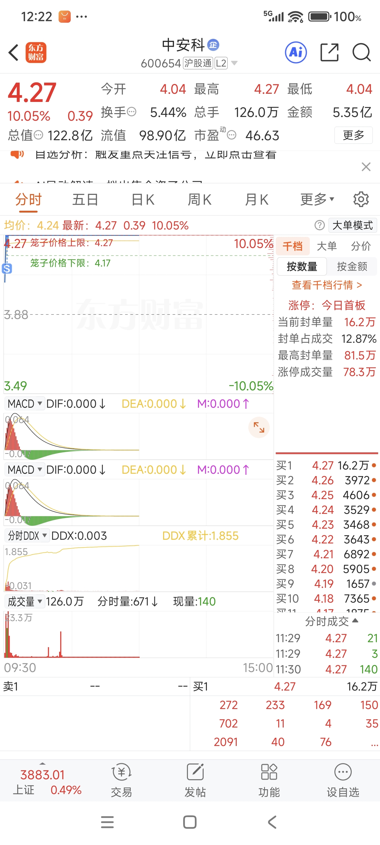 涨停卖了,应该还要涨,等钱用没法,谢谢中安。