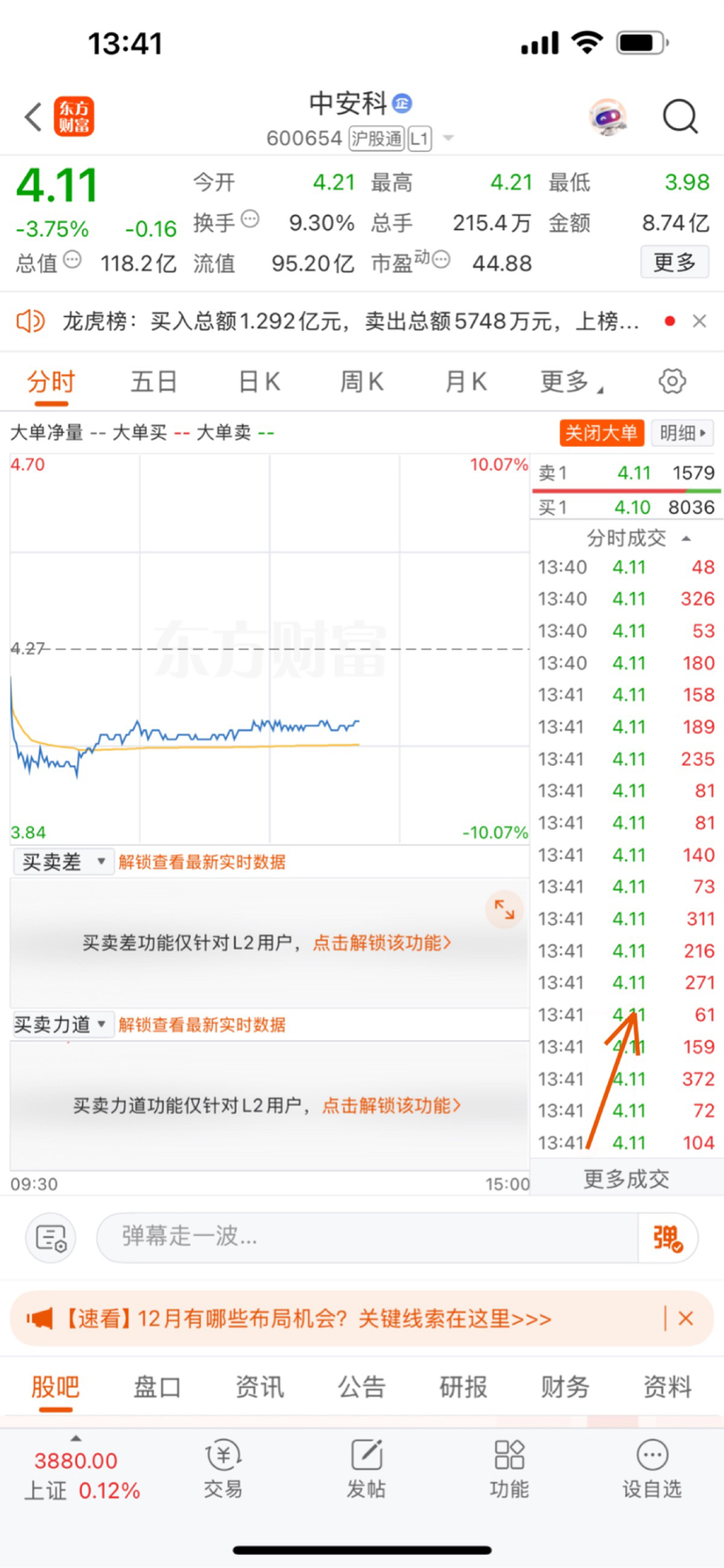 $中安科(SH600654)$ 这些红色的没有箭头→向上,是不是没有买入?竞价没买入?一堆大单买,股价没动。