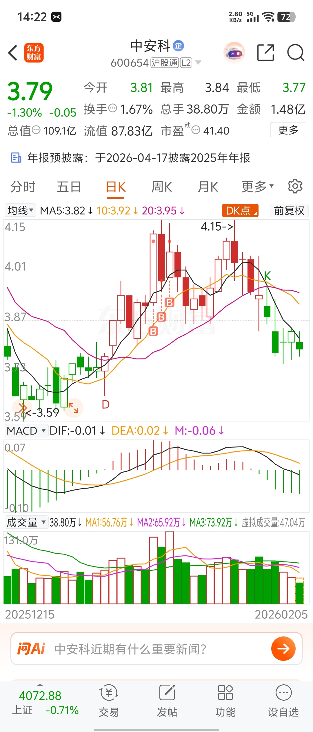 $中安科(SH600654)$ 我是不是该安静的走开?还是该勇敢留下来?