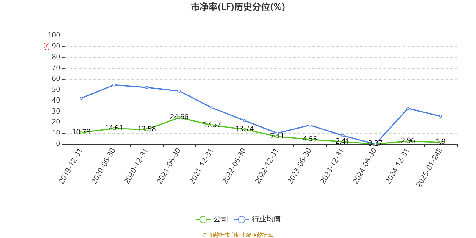中证智能财讯豫园股份(600655)1月24日晚间披露2024年度业绩预告,预计2024年归母净利润1亿元至1.5亿元,同比下降92.59%-95.06%;扣非净利润亏损20.5亿元至22亿元,上年同期亏损4.51亿元。以1月24日收盘价计算,豫园股份目前市盈率(TTM)约为157.59倍-236.39倍,市净率(LF)约0.65倍,市销率(TTM)约0.43倍。