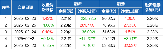 豫园股份:融资净偿还225.72万元,融资余额2.21亿元(02-26)