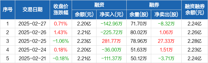 豫园股份:融资净偿还142.96万元,融资余额2.2亿元(02-27)