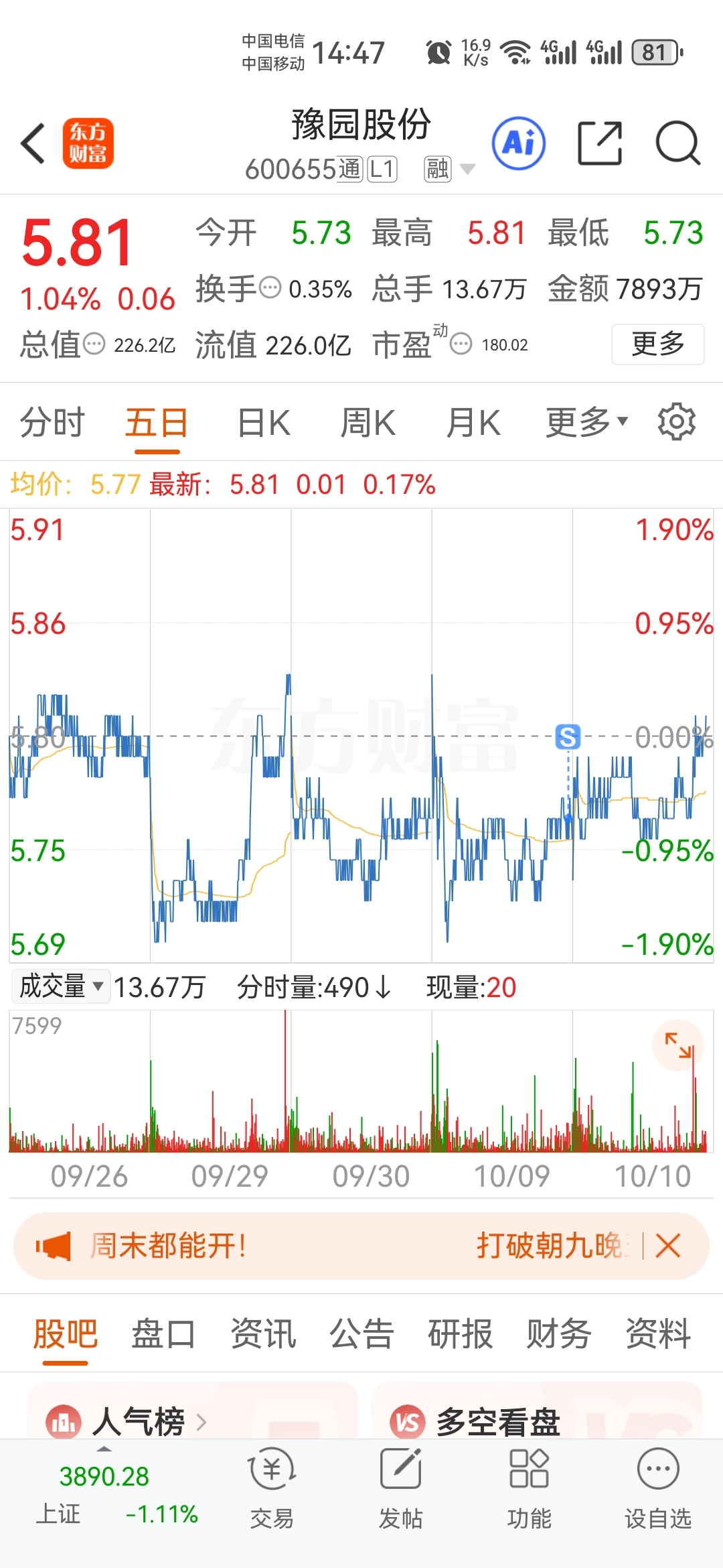 $豫园股份(SH600655)$ 我不卖决对不会涨,黄金降了,是因为我买了,哈哈