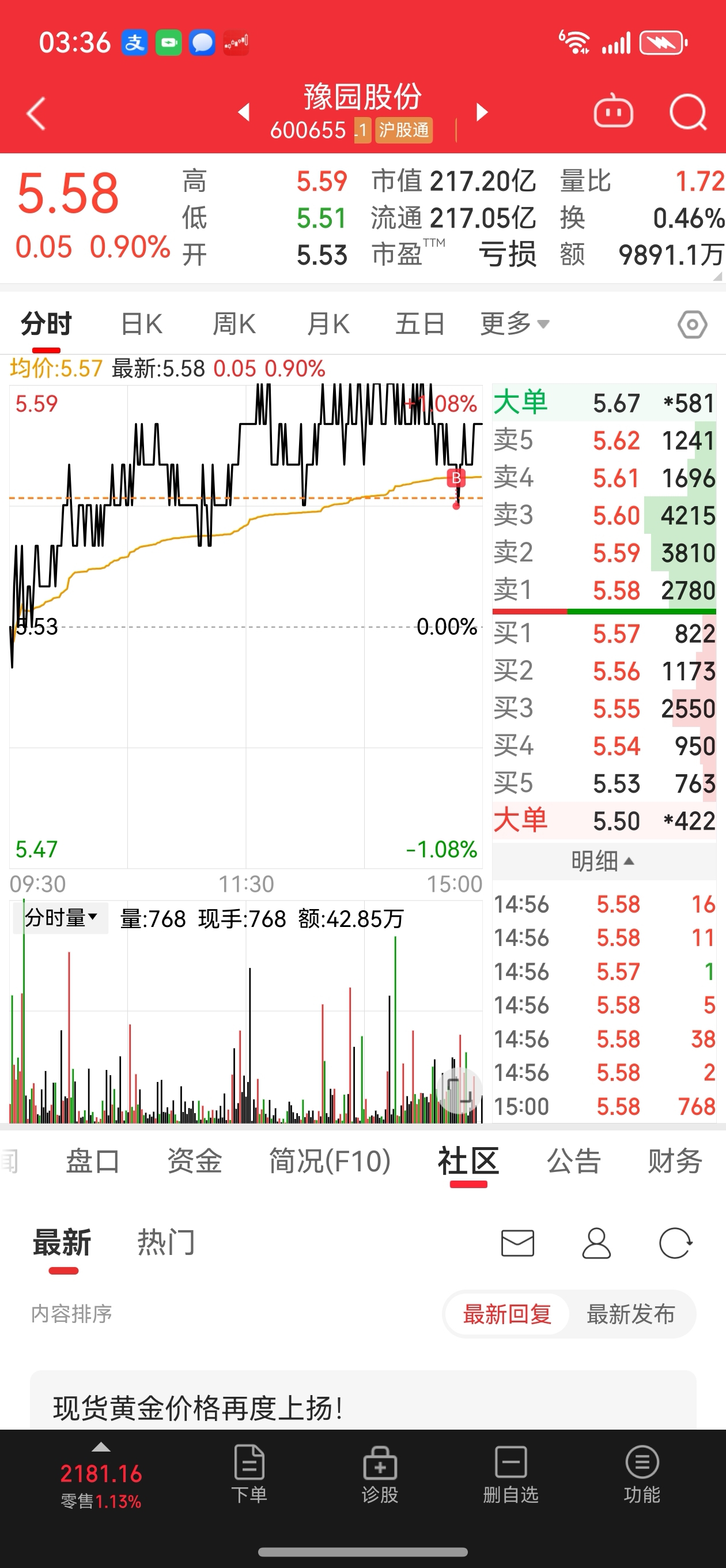 $豫园股份(SH600655)$ 挂了一个下午,还以为买不上呢,临收盘也要把我拉上车