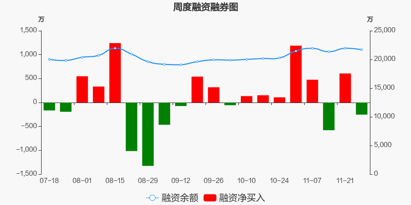 豫园股份本周(2025/11/24-2025/11/28)累计跌幅达0.37%,截至11月28日最新股价报收5.36元。从增量上来看,11月24日至11月28日融资买入交易规模1865.94万元,融资偿还规模2119.27万元,期内融资净偿还253.32万元。从存量上来看,截止11月30日,豫园股份融资融券余额2.25亿元,其中融资余额规模2.17亿元,融券余额规模748.36万元。