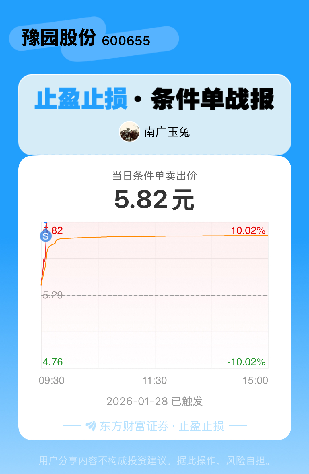#条件单交流# #止盈止损晒单# 我方派出一个止盈止损条件单,立时就征服了$豫园股份(SH600655)$