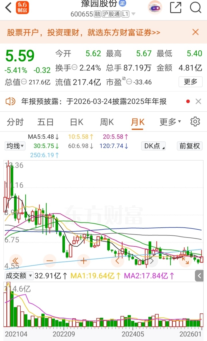 豫园股份现在的股价应该看多,月线能走出双底又是个翻倍股!