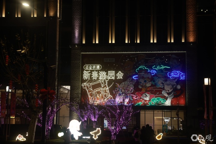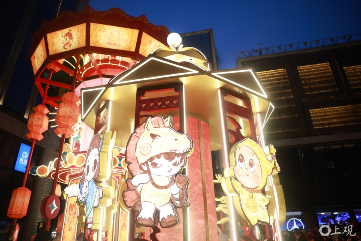 今晚点亮的BFC风尚潮流灯区联合泡泡玛特打造了潮流年味新体验。