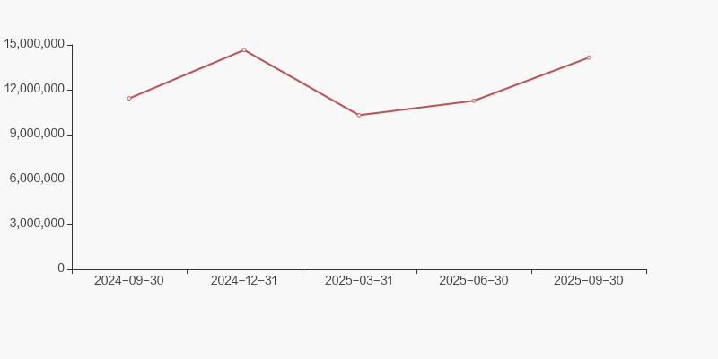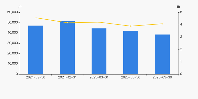 自2024年12月31日以来,公司股东户数连续3期下降,截至目前减幅为24.99%。2024年12月31日至2025年9月30日区间股价下降1.92%。
