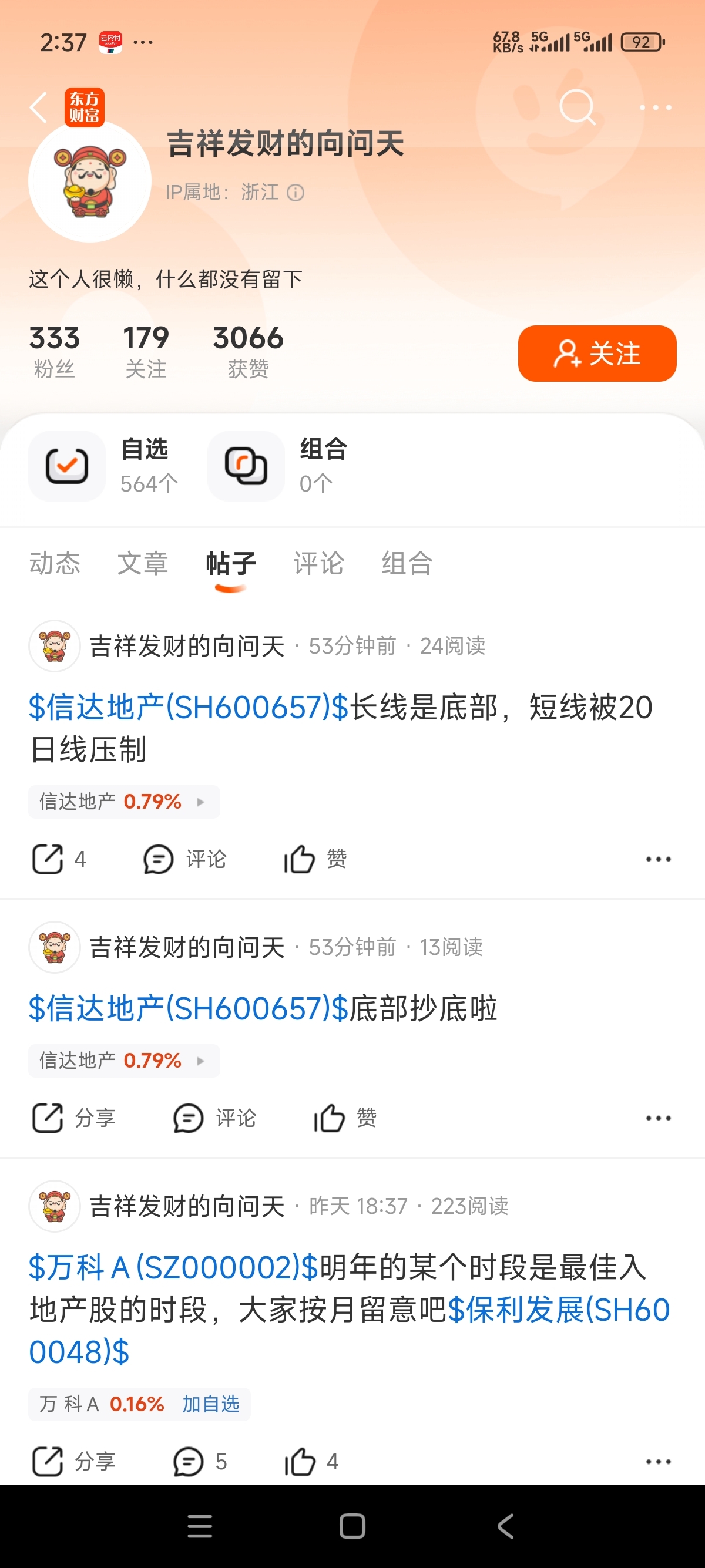 $信达地产(SH600657)$ 有这种无脑,白,,,c一样的玩意再,能涨才怪,还底部,