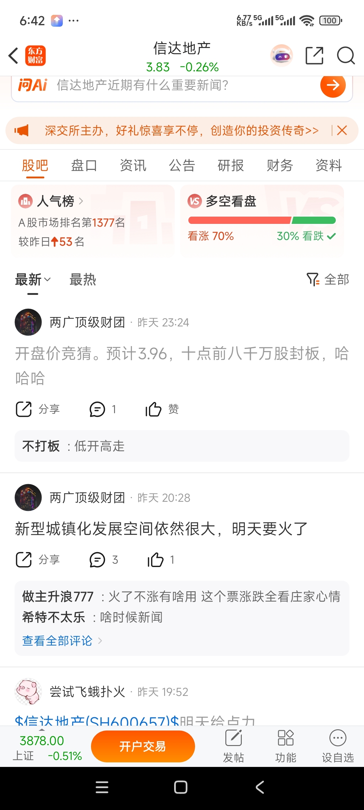 $信达地产(SH600657)$ 白c一样的,就这样的,今年以来天天到处喊高开,喊涨停,有一次对的??毫无根据再那无脑唱多,白,,,,c一样的玩意
