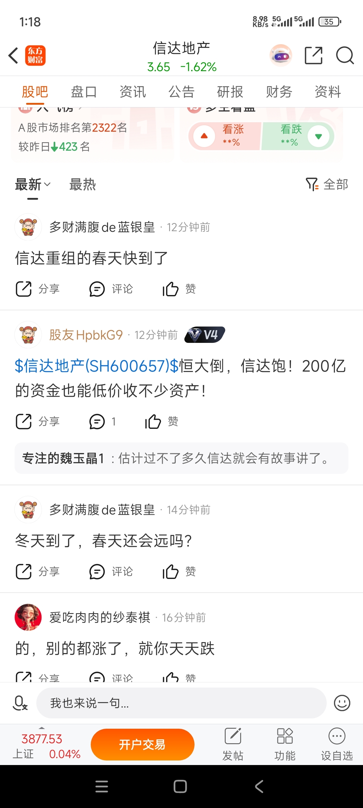 $信达地产(SH600657)$ 跌成这个样子,走势这么差劲还有白c天天说要讲故事,要涨停,要吃恒大,为何说明有恒大的雷,跌了6天,大跌啊?还唱多,不是白c就是拖