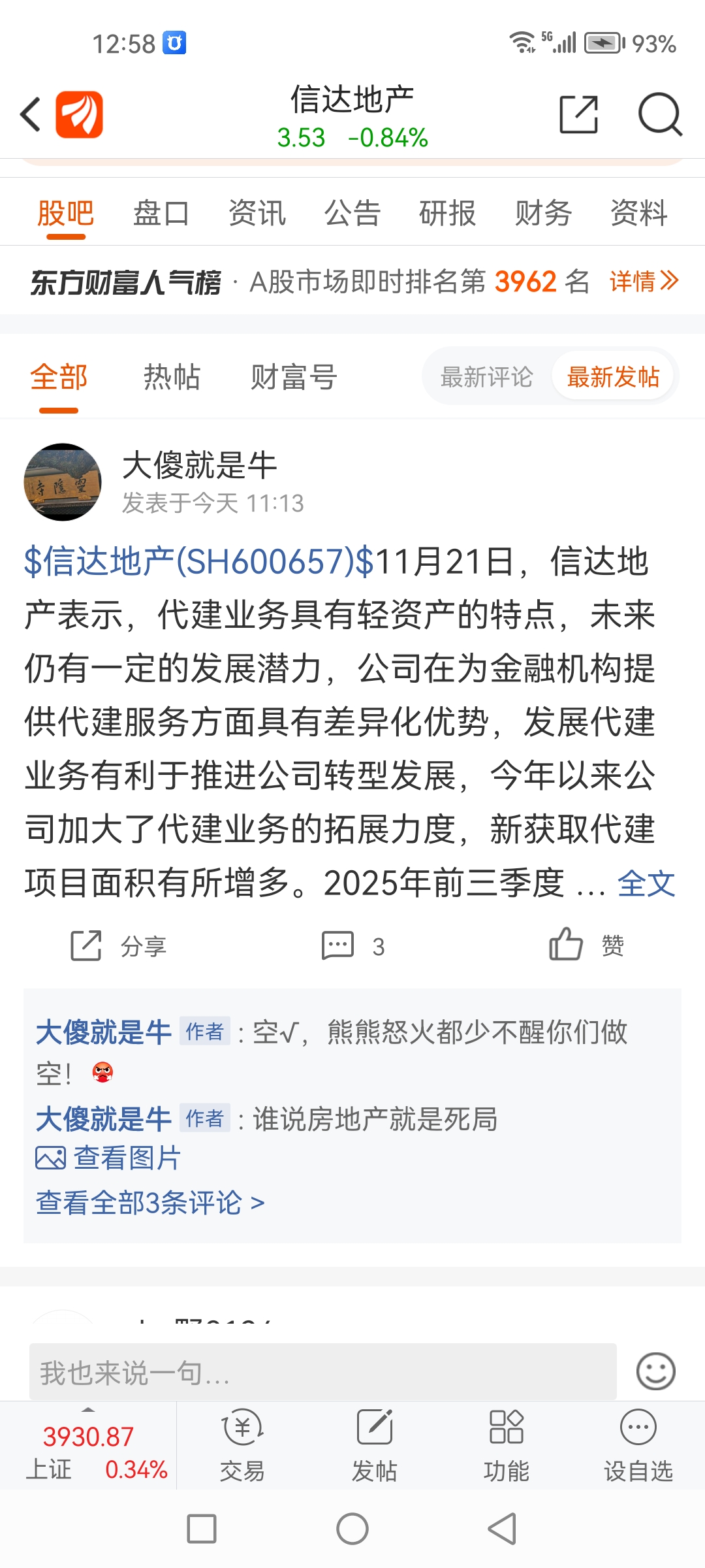 温馨提示: 1.根据《证券法》规定,禁止编造、传播虚假信息或者误导性信息,扰乱证券市场;2.用户在本社区发表的所有资料、言论等仅代表个人观点,与本网站立场无关,不对您构成任何投资建议。用户应基于自己的独立判断,自行决定证券投资并承担相应风险。《东方财富社区管理规定》
