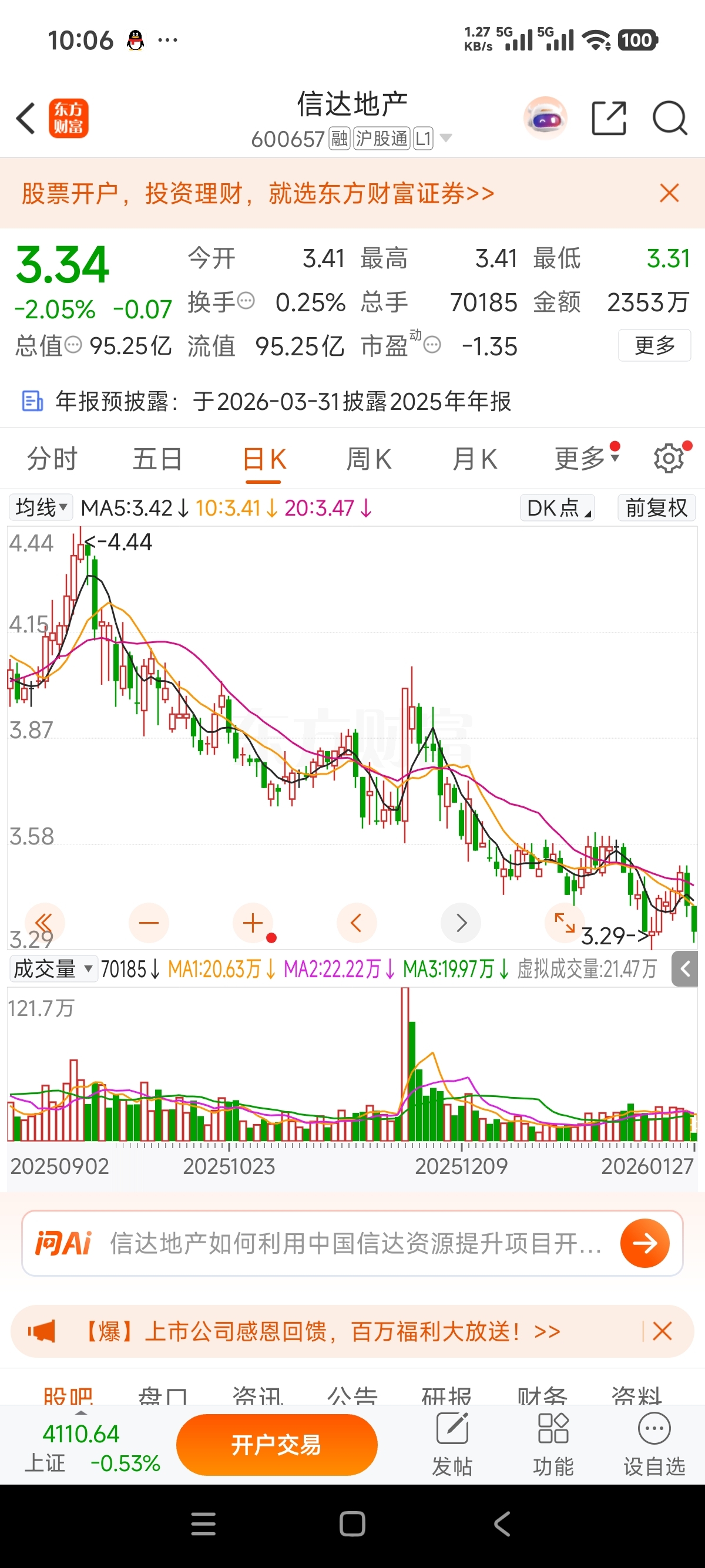 $信达地产(SH600657)$ 按这个走势,明天还得跌2个多点,3.29止不住,一步一个阶梯往下走