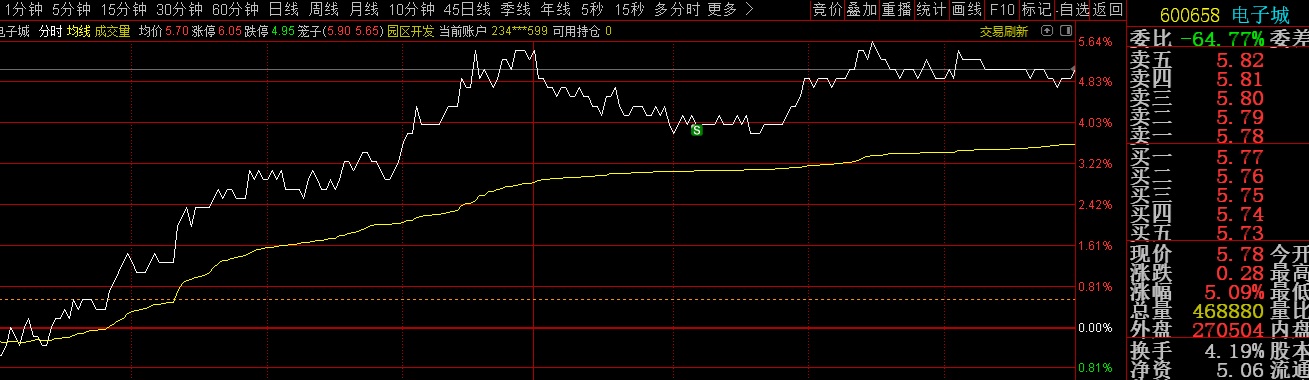 今天下午卖了电子城,当时看走势会到均线以下。本来是想找个差价,等了半天眼看是不行
