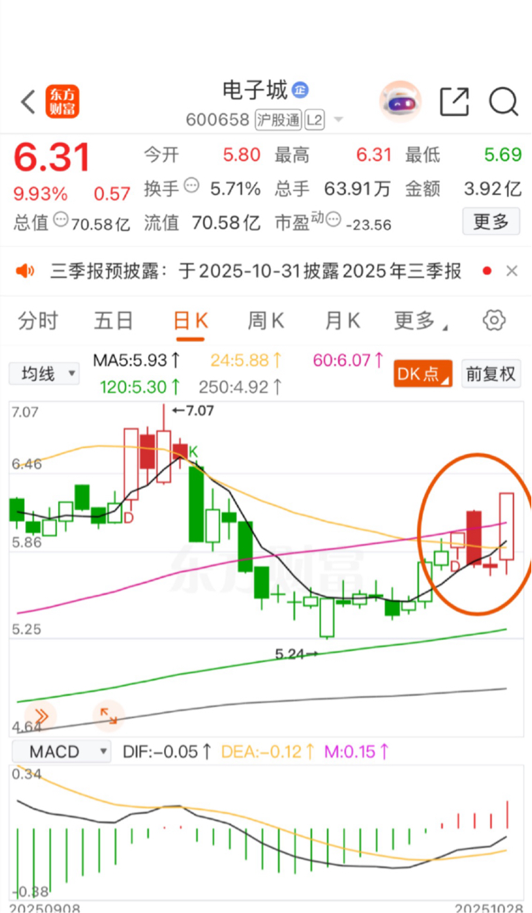$电子城(SH600658)$ 早晨之星,这个K线形态是不是挺标准的。