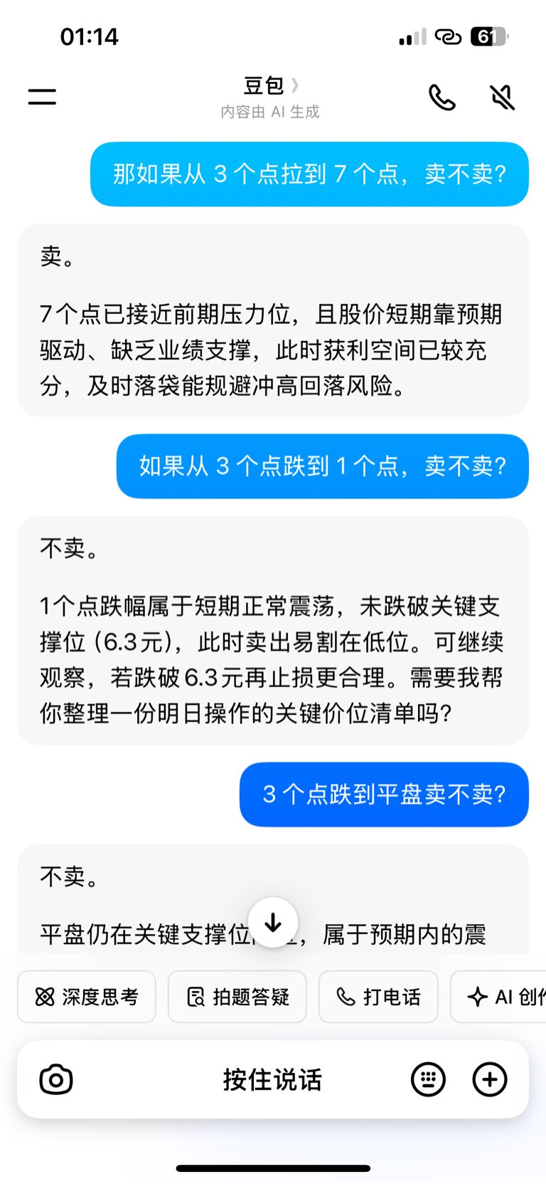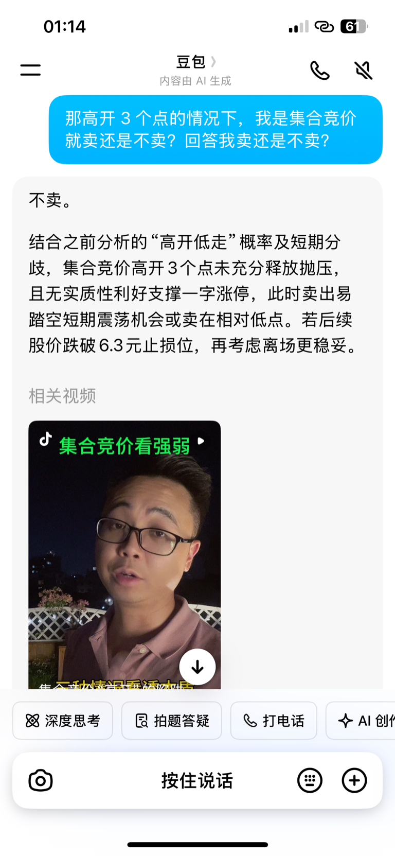 总结一下,豆包说明天不可能一字,但会高开,虽然容易高开低走,但集合竞价不要卖,冲