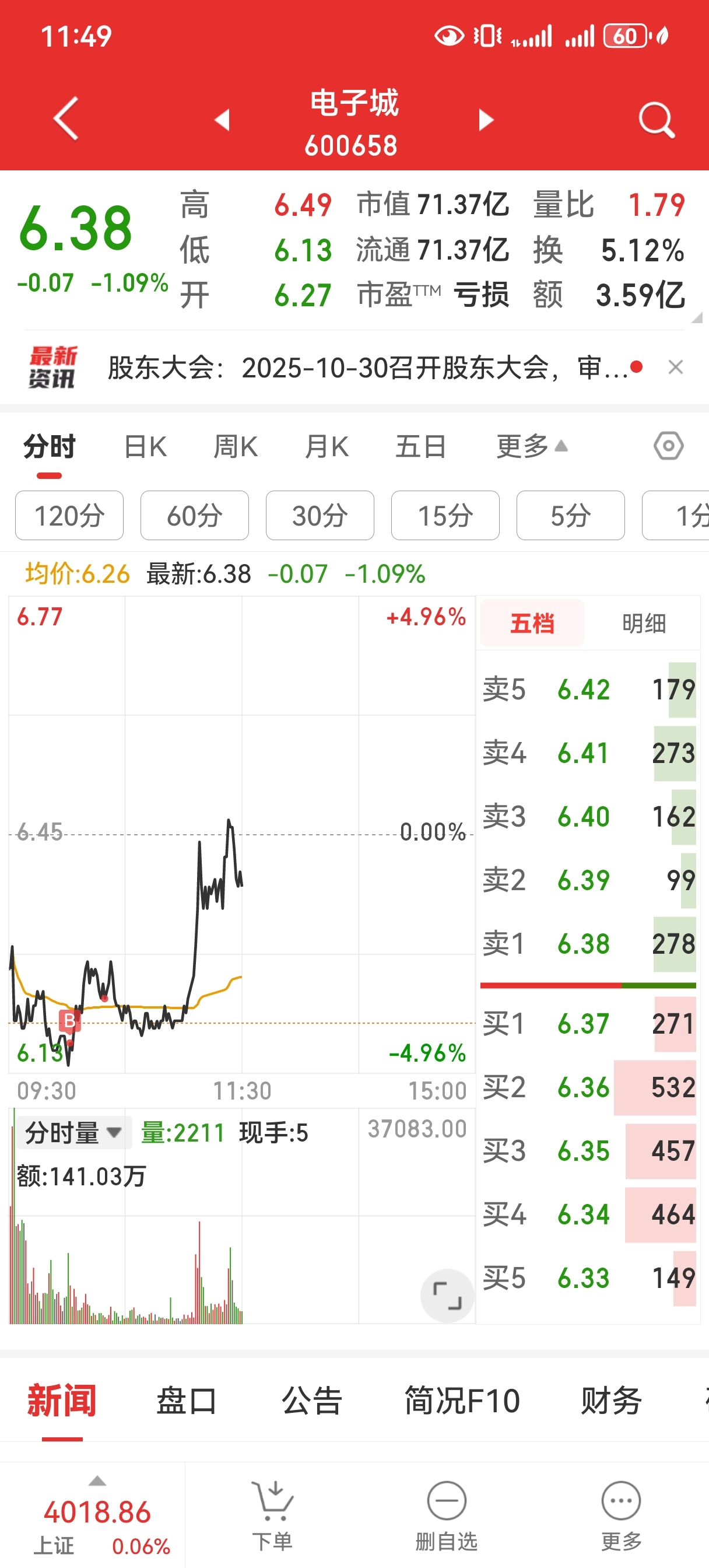 $电子城(SH600658)$ 上午低位买入电子城,量子科技持续走一波。电子城涨停后震荡第二天。
