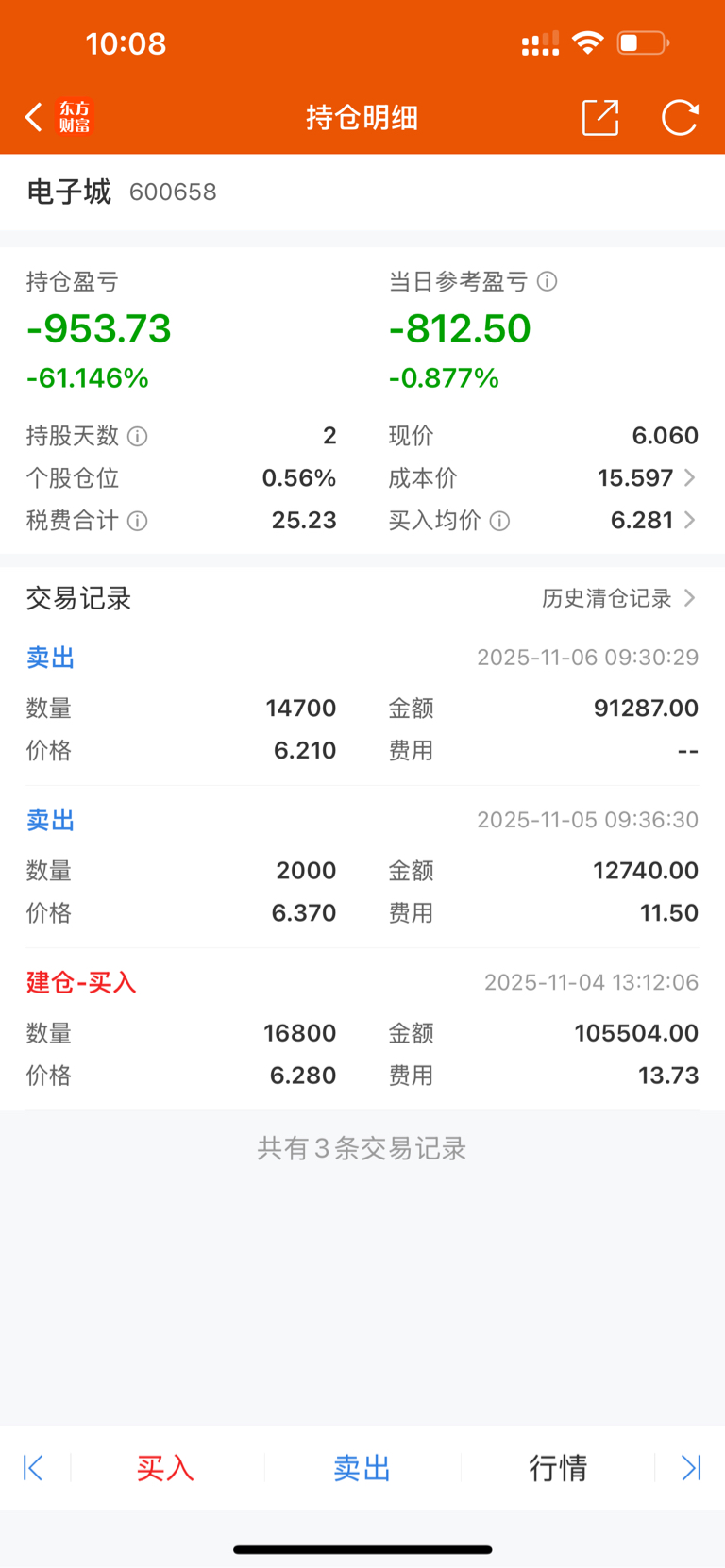$电子城(SH600658)$ 心疼死了,两天就亏了九百块,擦,留一百股,未来报仇