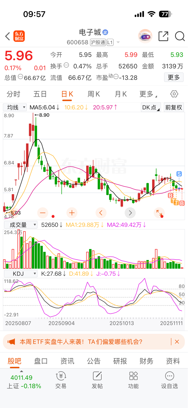 $电子城(SH600658)$ 昨天5.97割肉了,不甘心,今天5.94又接回,做了个3分钱的T