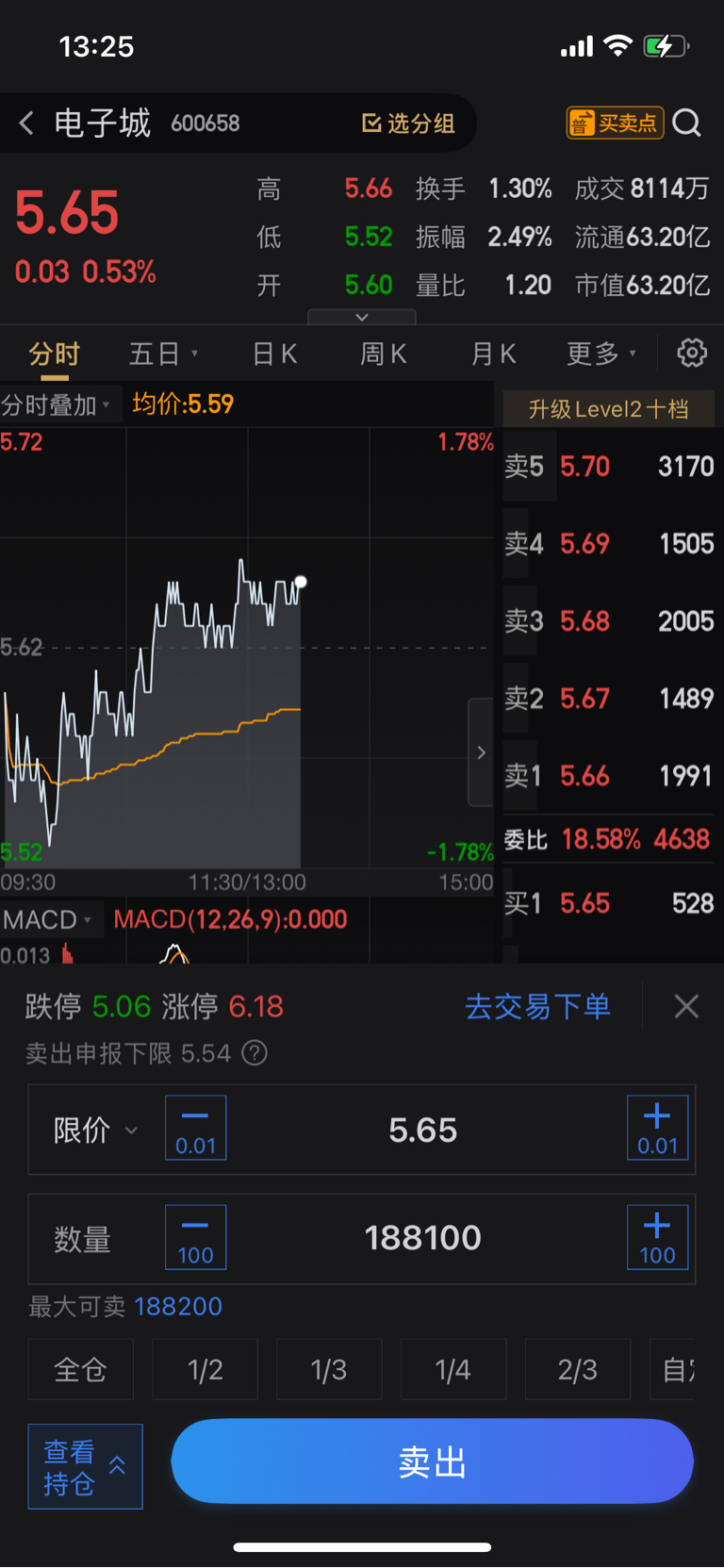 $电子城(SH600658)$ 5.47买入的先出来,还有一层仓位