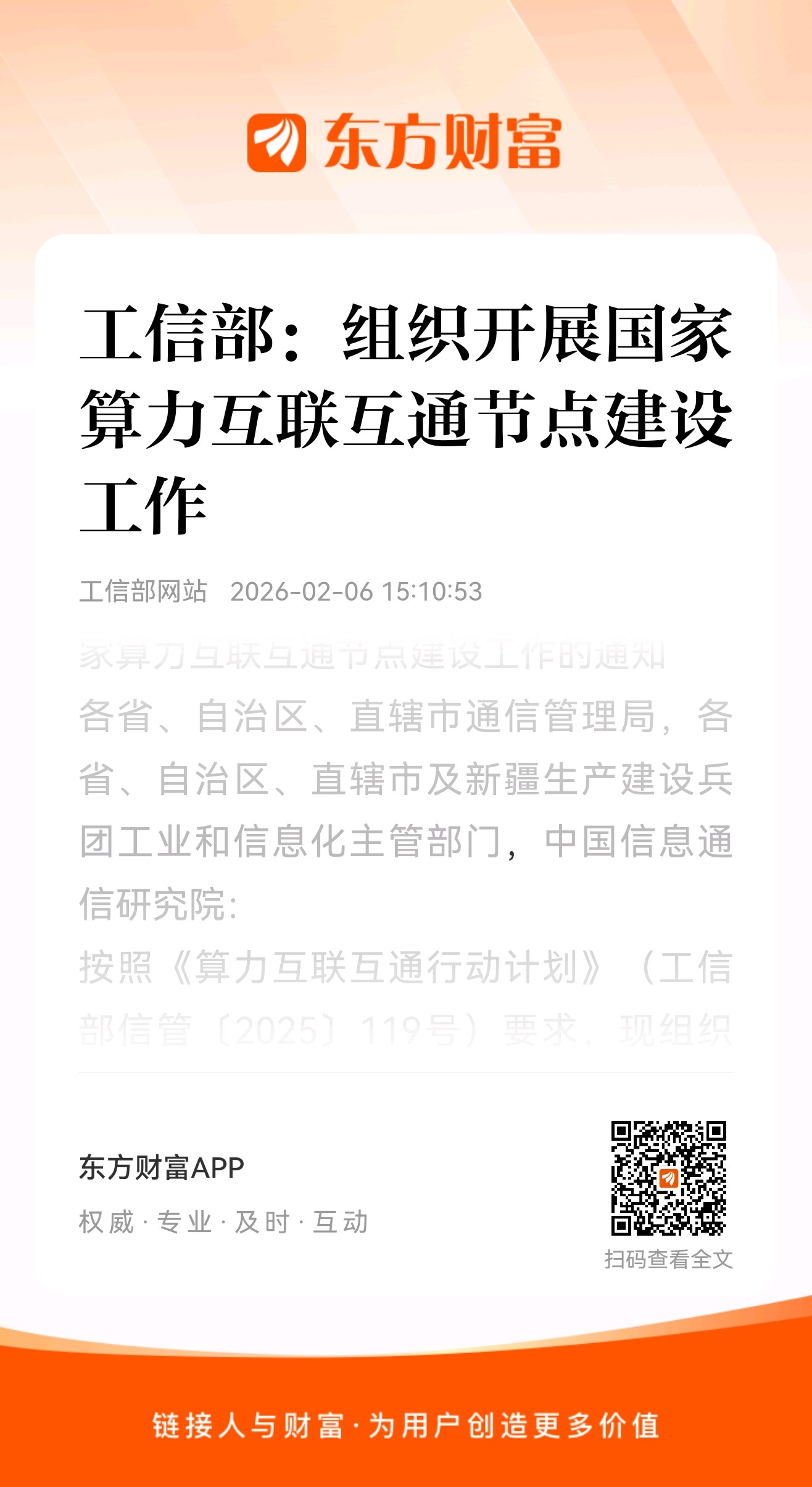 $电子城(SH600658)$ 工业和信息化部办公厅关于组织开展国家算力互联互通节点建设工作的通知.