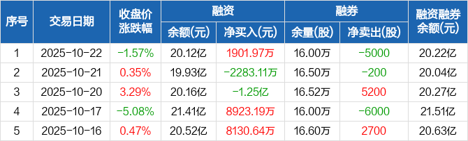 福耀玻璃:融资净买入1901.97万元,融资余额20.12亿元(10-22)
