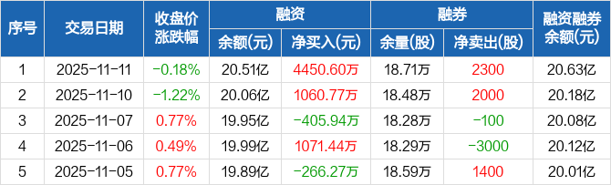 福耀玻璃:融资净买入4450.6万元,融资余额20.51亿元(11-11)