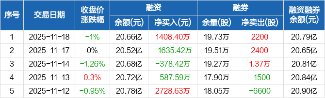 福耀玻璃:融资净买入1408.4万元,融资余额20.66亿元(11-18)