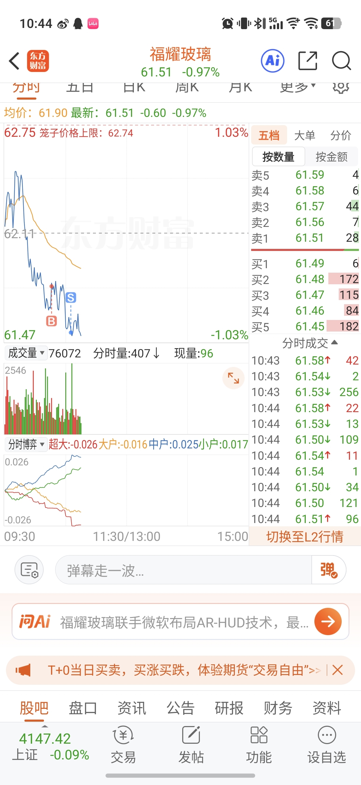 $福耀玻璃(SH600660)$ 太弱。。。走了