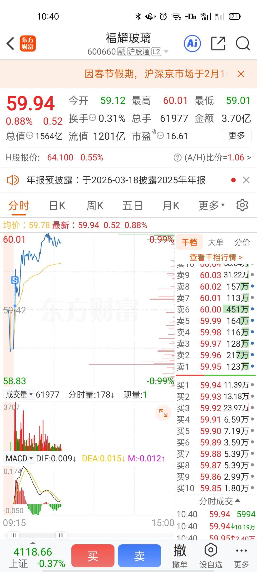 $福耀玻璃(SH600660)$ 跑快了,没涨到红包,