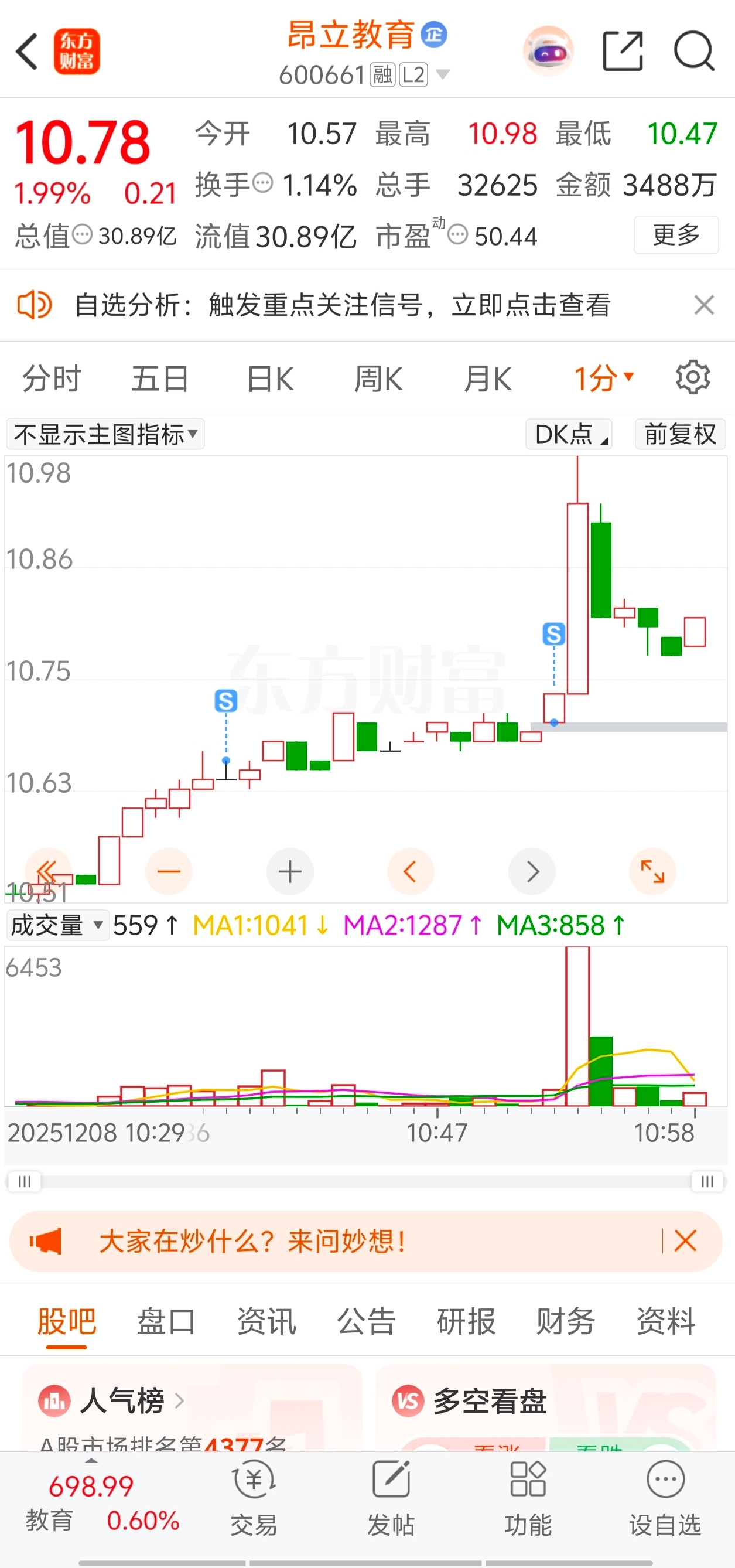 $昂立教育(SH600661)$ 卖了你就拉升,我再也不来了,去证券了
