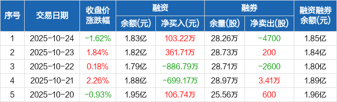 外服控股:融资净买入103.22万元,融资余额1.83亿元(10-24)