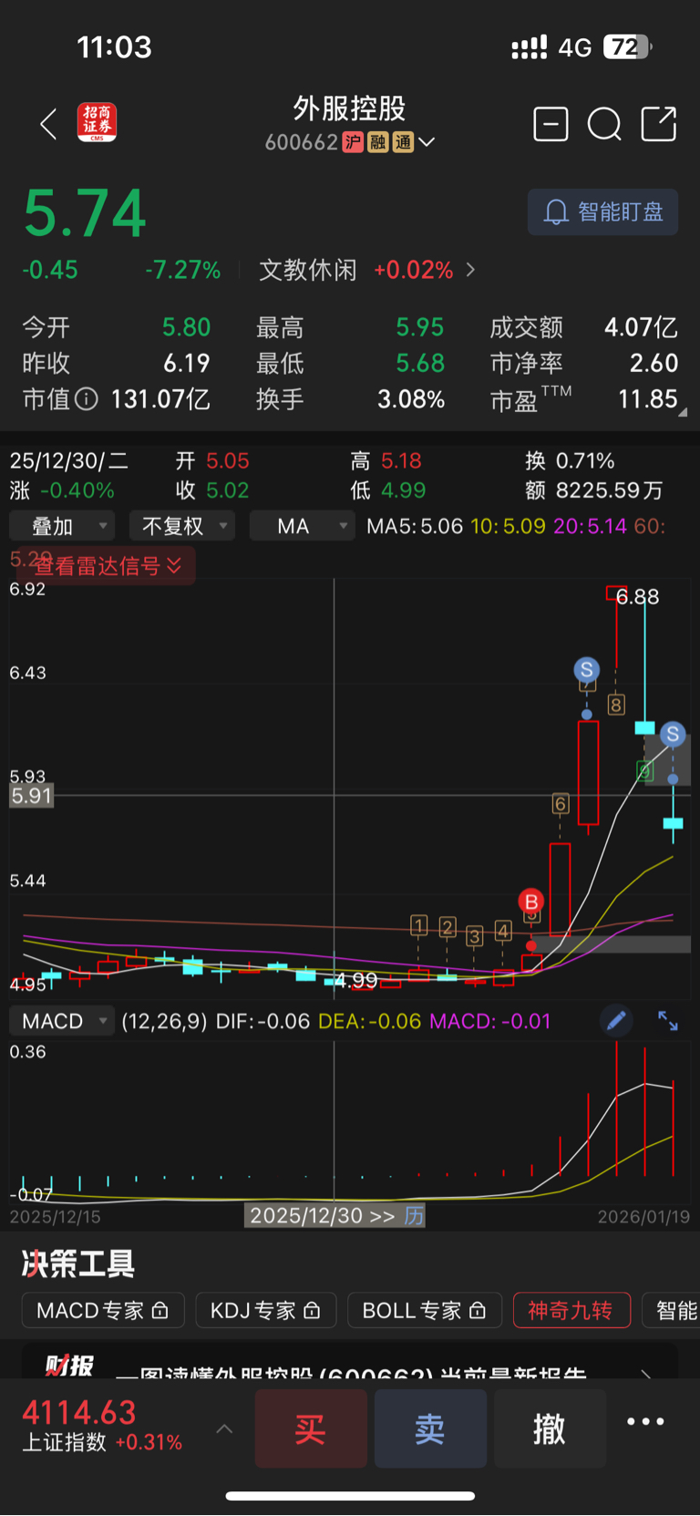 $外服控股(SH600662)$ 煮熟的鸭子飞了