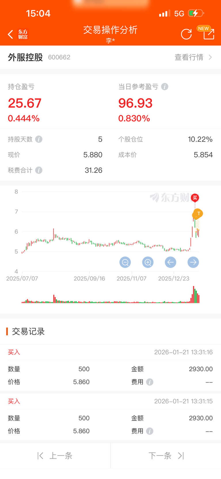$外服控股(SH600662)$ 兄弟们我回本了,赚包华子了