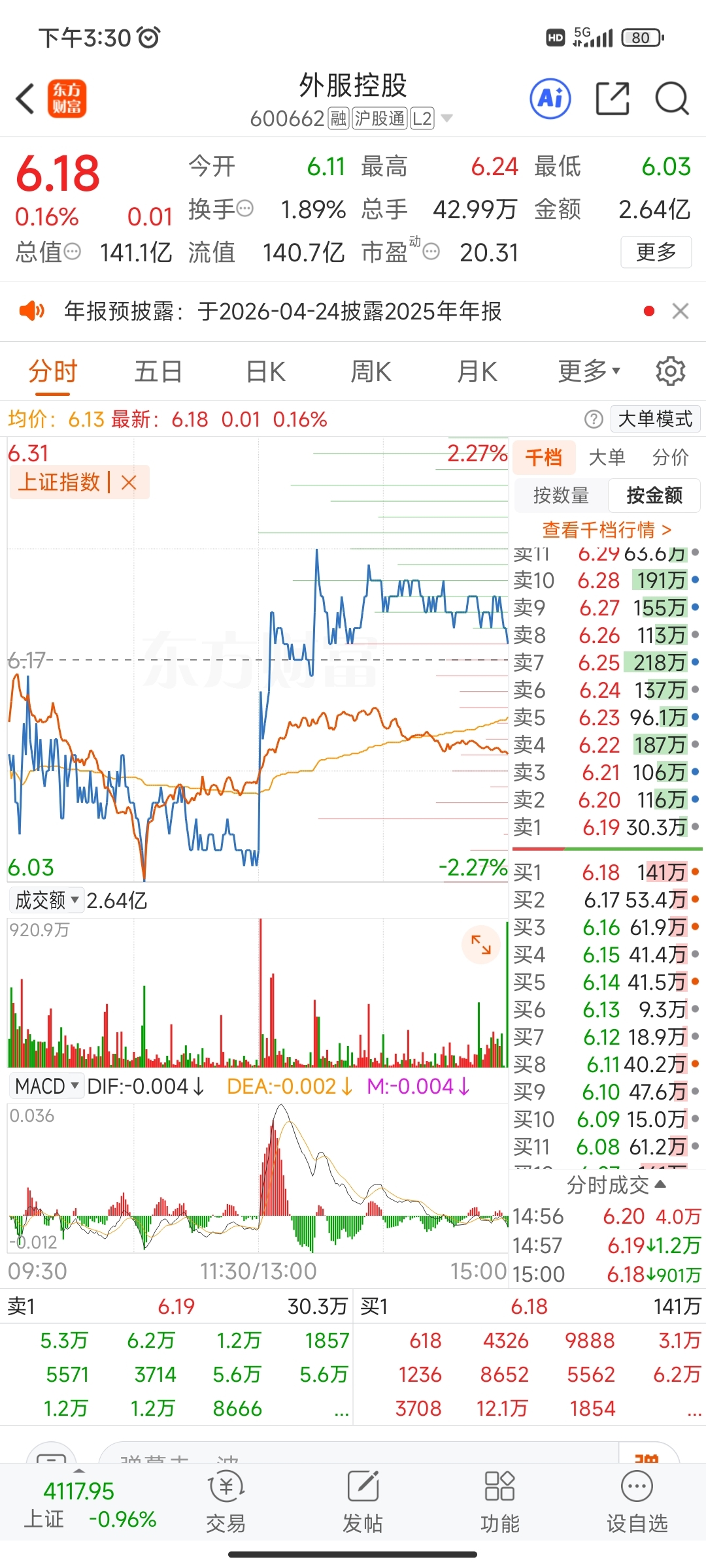 $外服控股(SH600662)$ 各位大佬,今天是出货还是洗盘啊