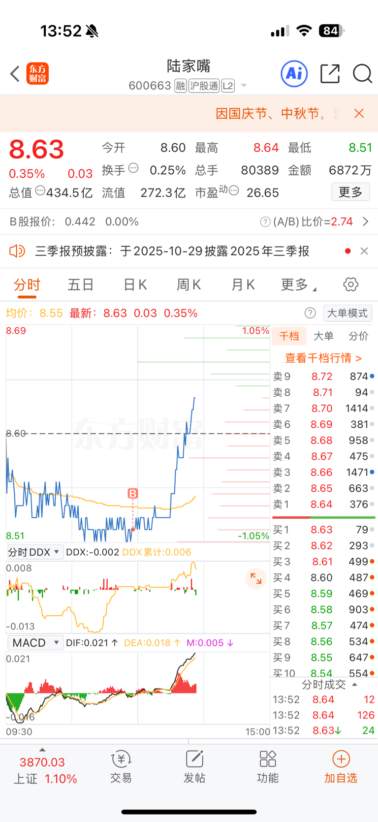 $陆家嘴(SH600663)$ 还是房地产给力,我做十次地产股十次赚的,因为个个都怕地产,人少的地方才好混吃混喝的。