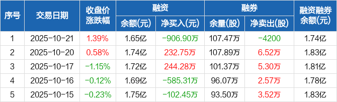 陆家嘴:融资净偿还906.9万元,融资余额1.65亿元(10-21)
