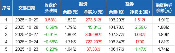 陆家嘴:融资净买入273.61万元,融资余额1.82亿元(10-29)