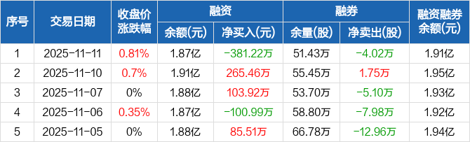 陆家嘴:融资净偿还381.22万元,融资余额1.87亿元(11-11)