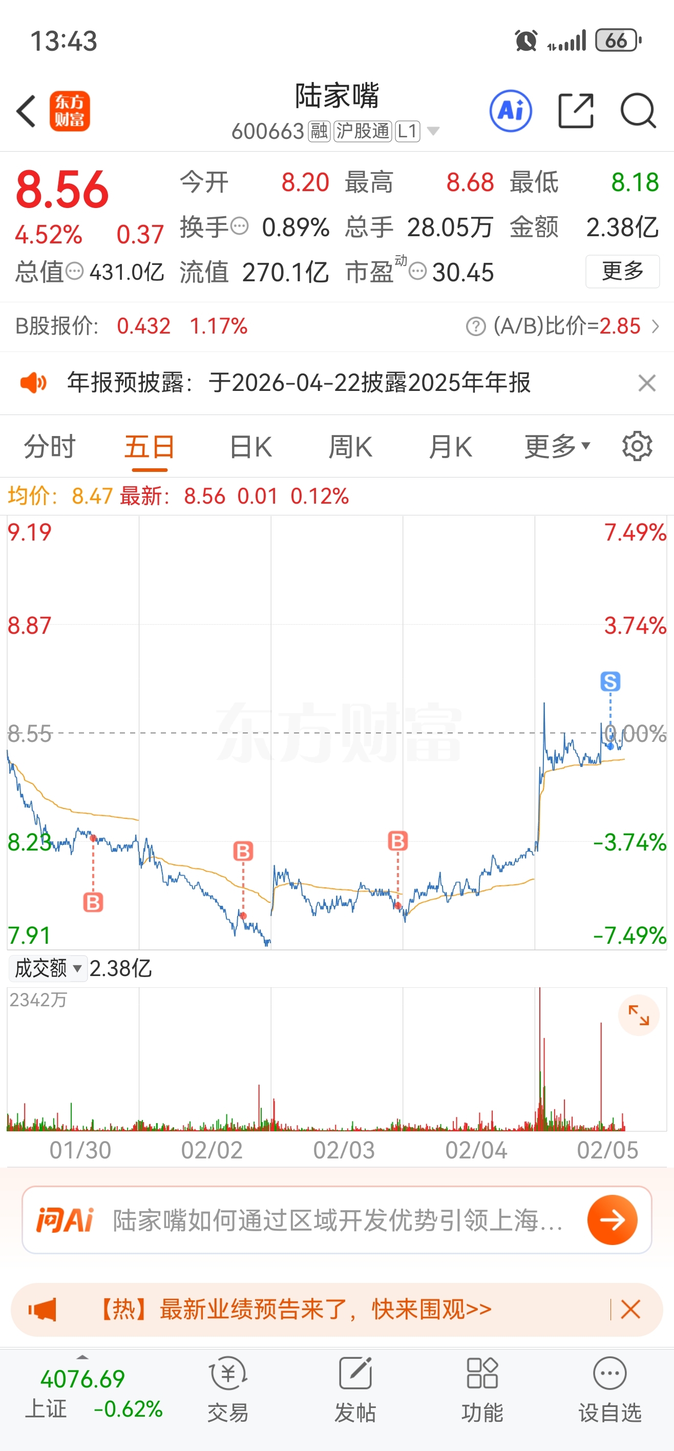 $陆家嘴(SH600663)$ 我下车了,落袋为安