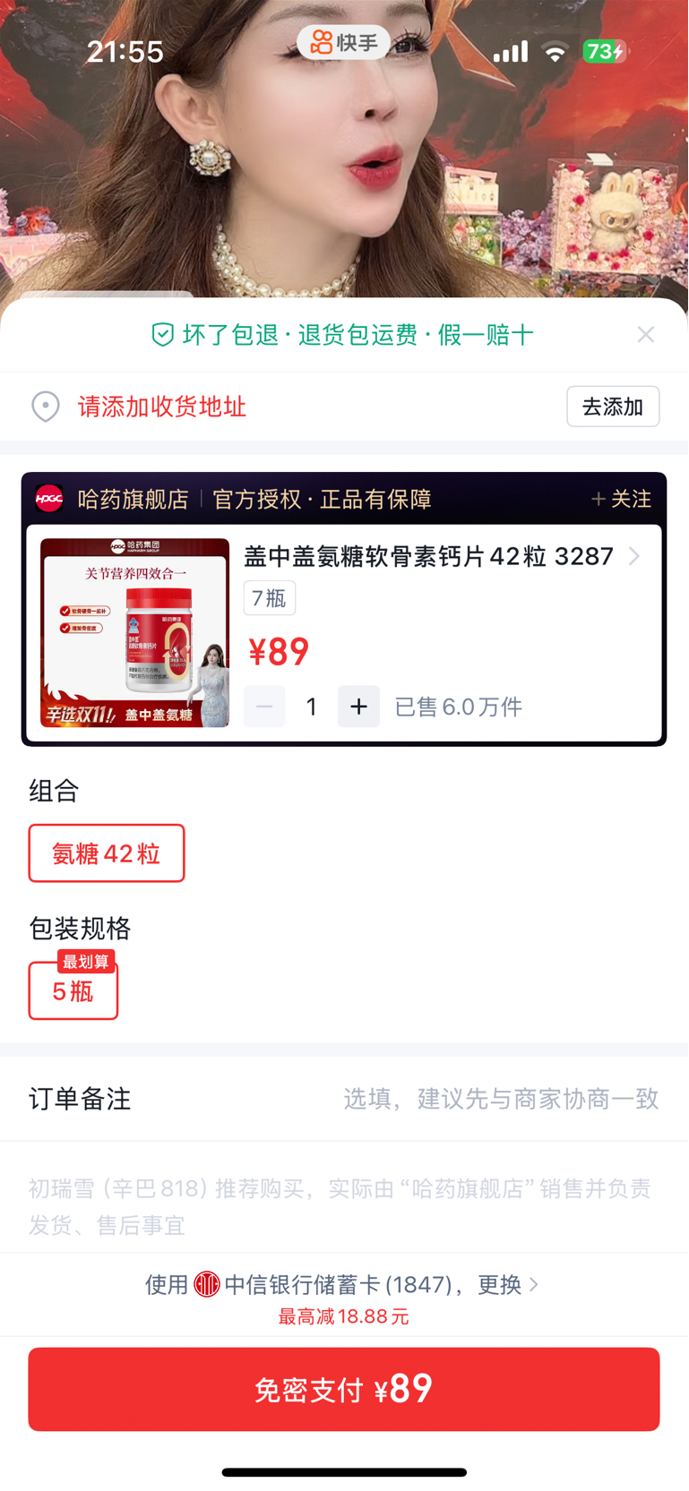 辛巴老婆今晚卖了6万单哈药盖中盖,又卖了6万单哈药钙铁锌,合计1千万营业额