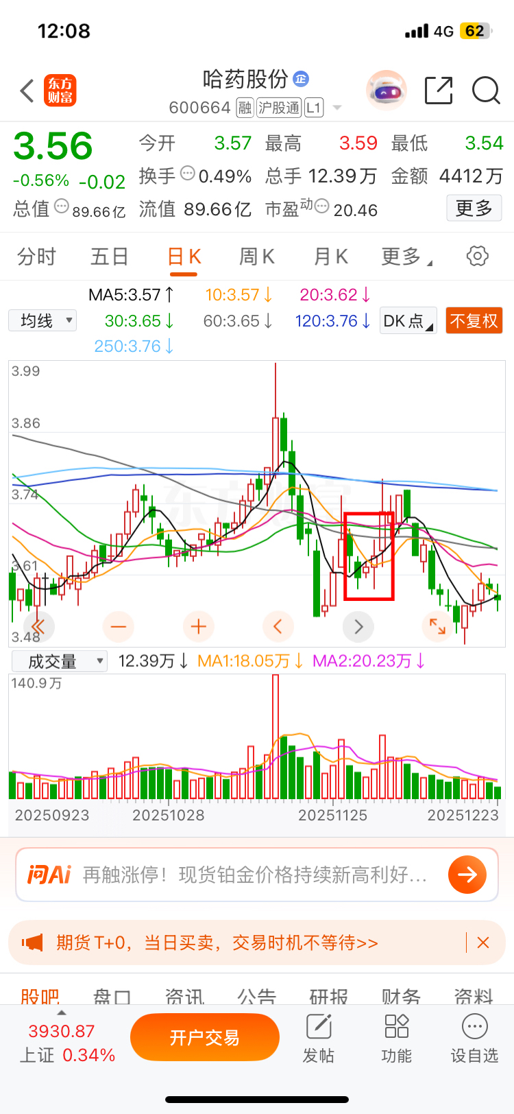 $哈药股份(SH600664)$ 当前的走势和这一段很相像,预计今天会收出一个十字星或长下影线的小阳线。还是要相信技术,相信资本的布局哈!