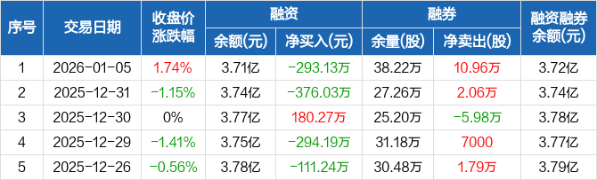 哈药股份:融资净偿还293.13万元,融资余额3.71亿元(01-05)