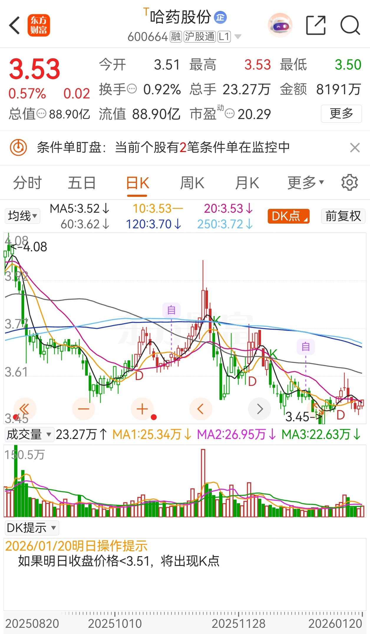 不管DK怎么提示,都不耽误哈药下跌趋势