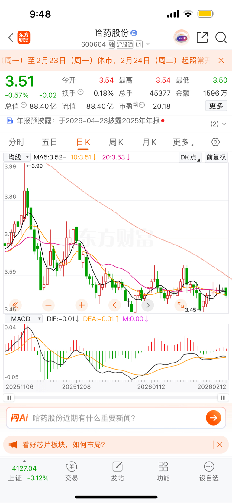 $哈药股份(SH600664)$ 怎么看?倒过来看还是跌