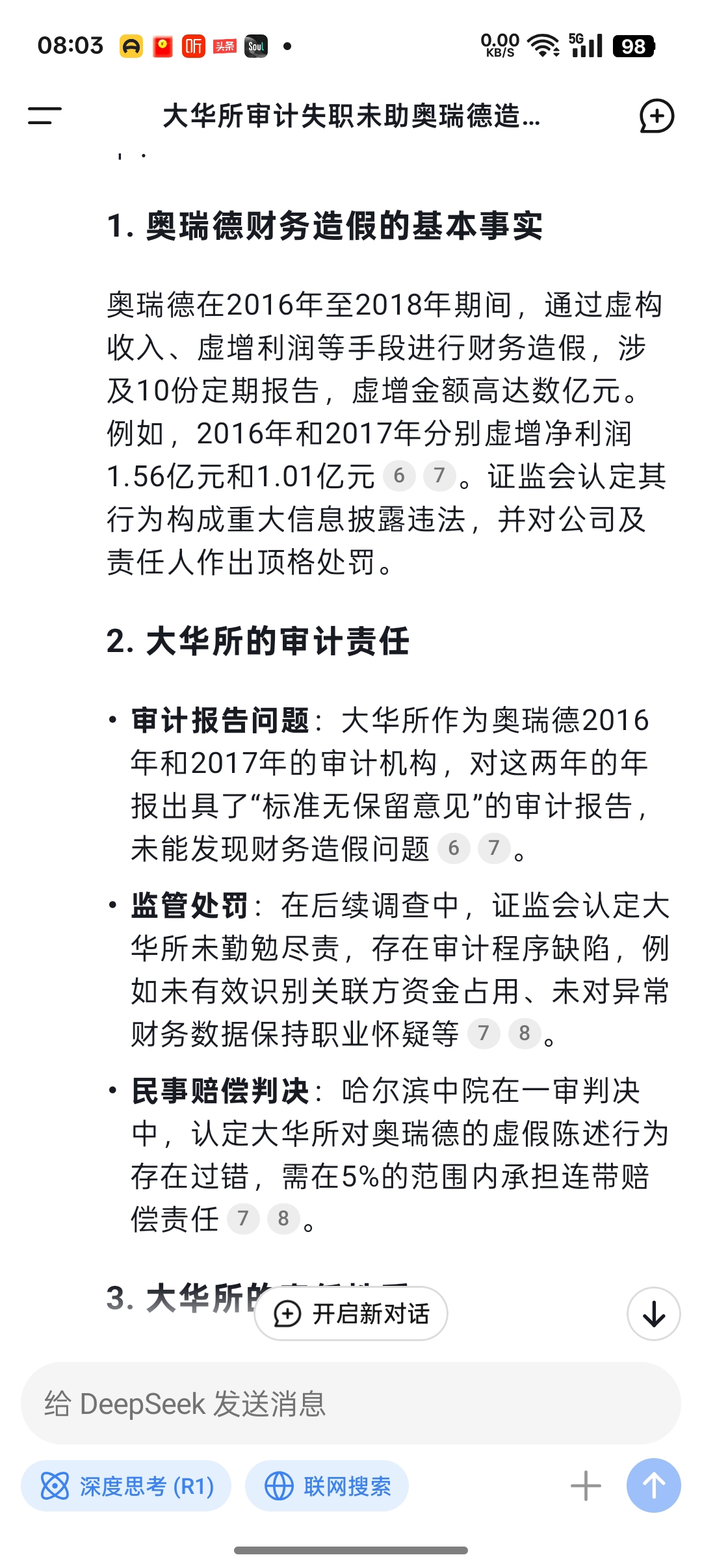 deepseek关于大华会计师事务所是否为奥瑞德业绩造假的回复